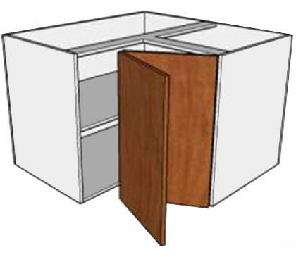 L Shape corner cabinet with 2 doors hinged right & fixed or adjustable shelves.